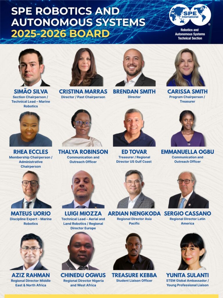 Together, this international board provides strategic direction for global robotics and autonomous systems initiatives across the energy industry—ensuring that innovation, research, and professional development remain central pillars of the SPE RAS TS mission.
